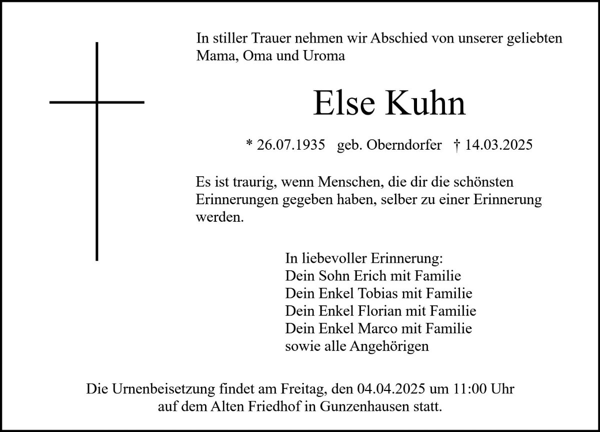 Unser Aufrichtiges Beileid zum Tod unserer lieben Frau Kuhn
