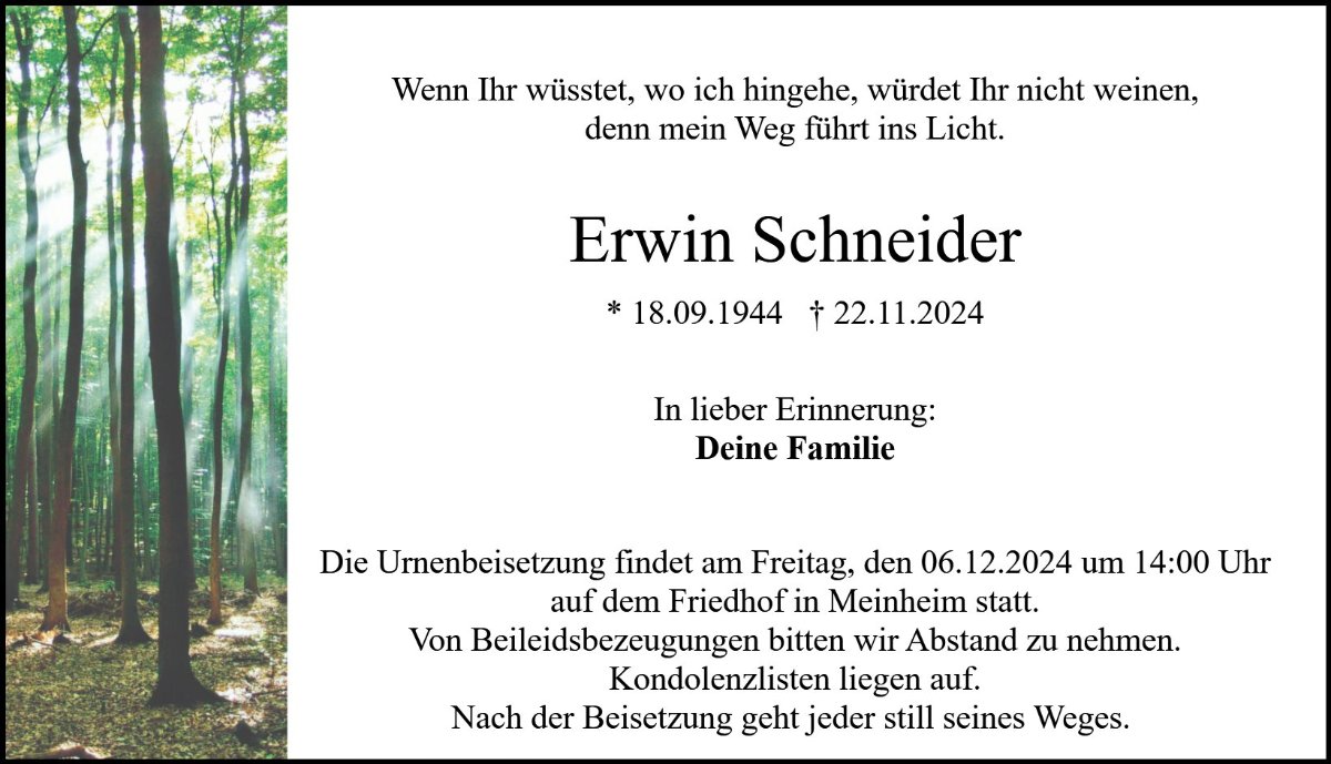 Sprechen Sie im Kondolenzbuch den Hinterbliebenen Ihr Beileid aus und teilen Sie persönliche Gedanken und Erinnerungen mit anderen.
