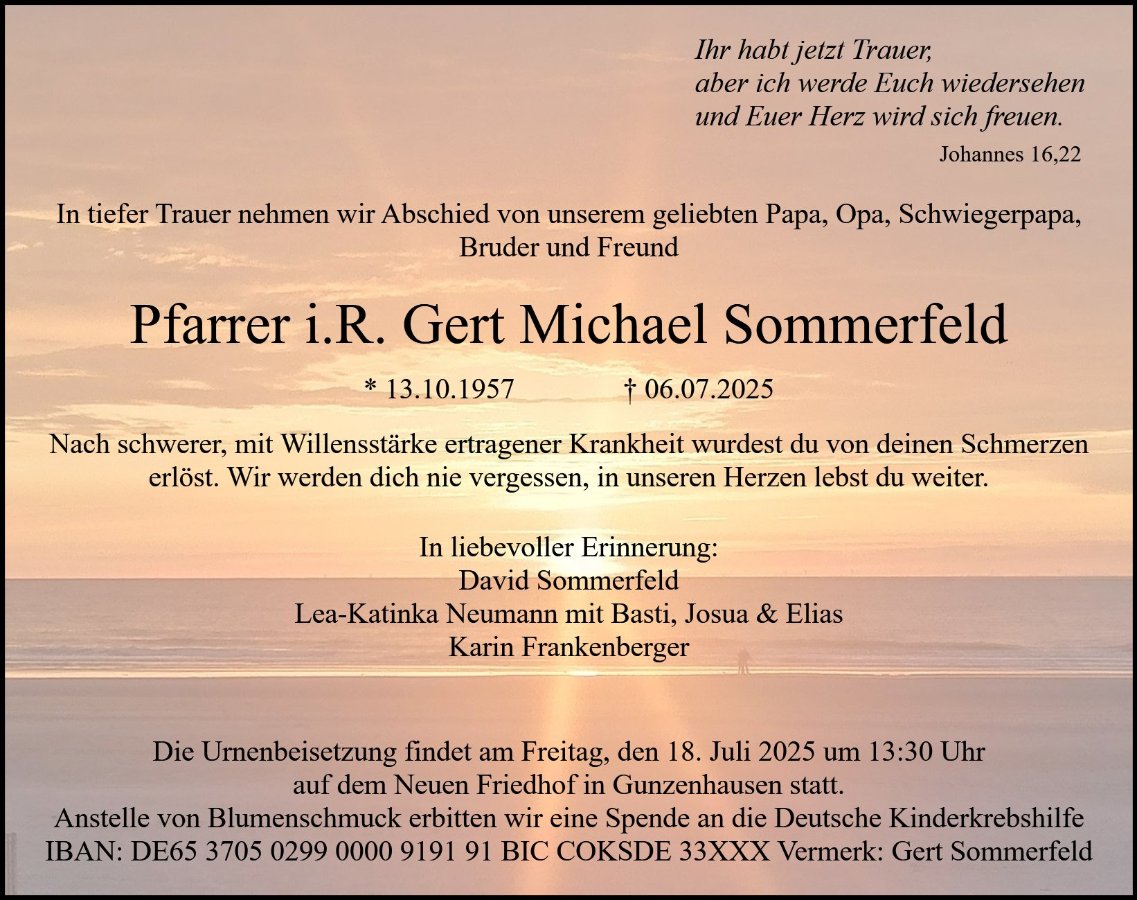 Pfarrer i.R. Gert Sommerfeldgestorben am 6. Juli 2025