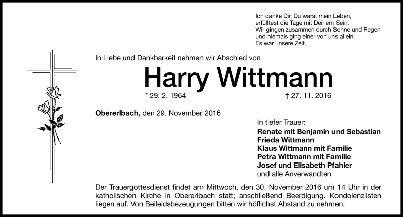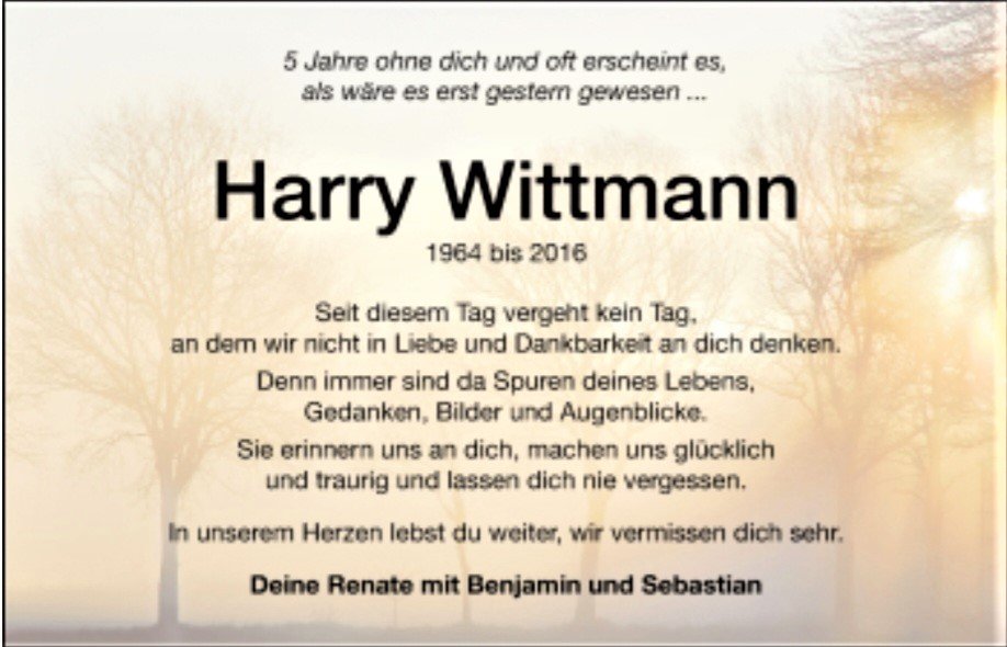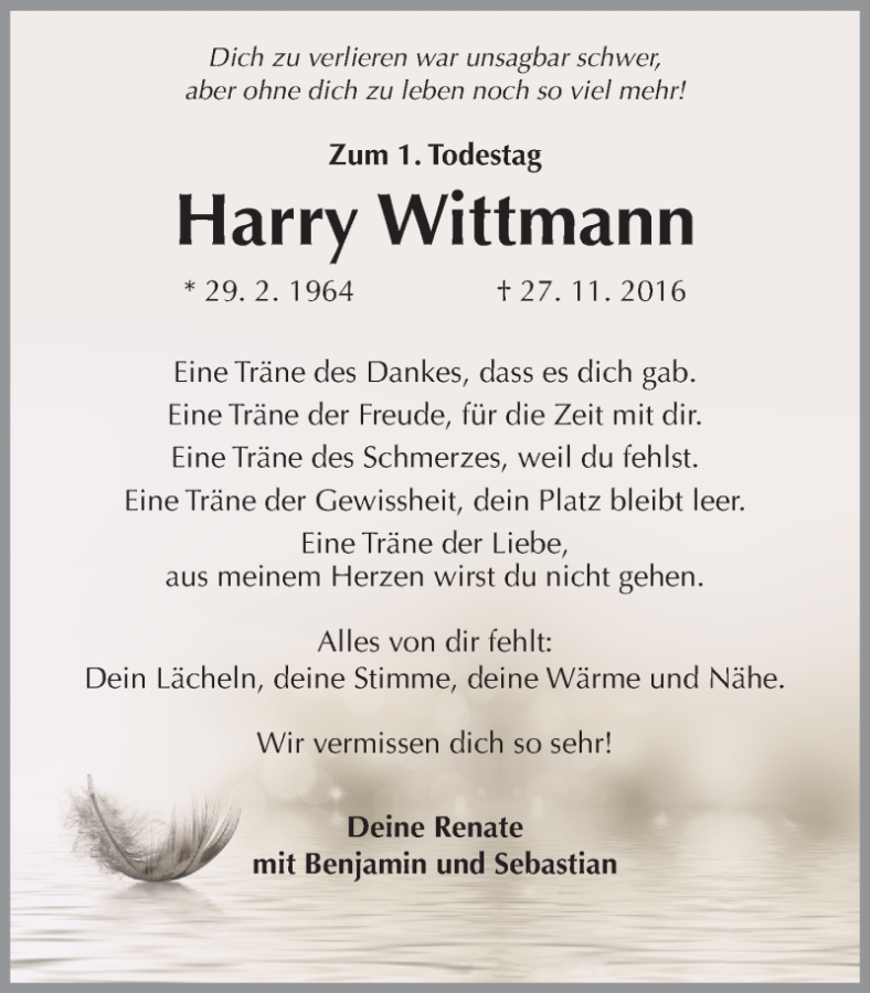Harry Wittmanngestorben am 27. November 2016