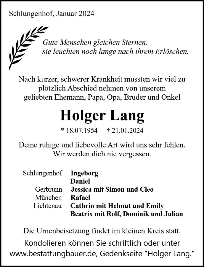 wir möchten Euch auf diesem Wege unsere aufrichtige Anteilnahme aussprechen. Möge die Zeit Euren Schmerz bald in eine dankbare Erinnerung verwandeln.