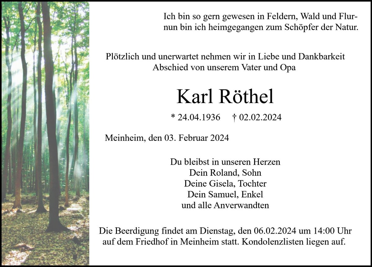 Es tut mir so leid! So plötzlich! Das ist ein großer Schock! Ich werde Euren Papa bzw. Opa immer als sehr netten und herzlichen Vater meines Schulfreundes in Erinnerung behalten. Und als freundlichsten und lustigsten Busfahrer beim Ebert!
