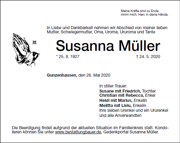 Lesen Sie hier die Anzeigen und Trauerpost!